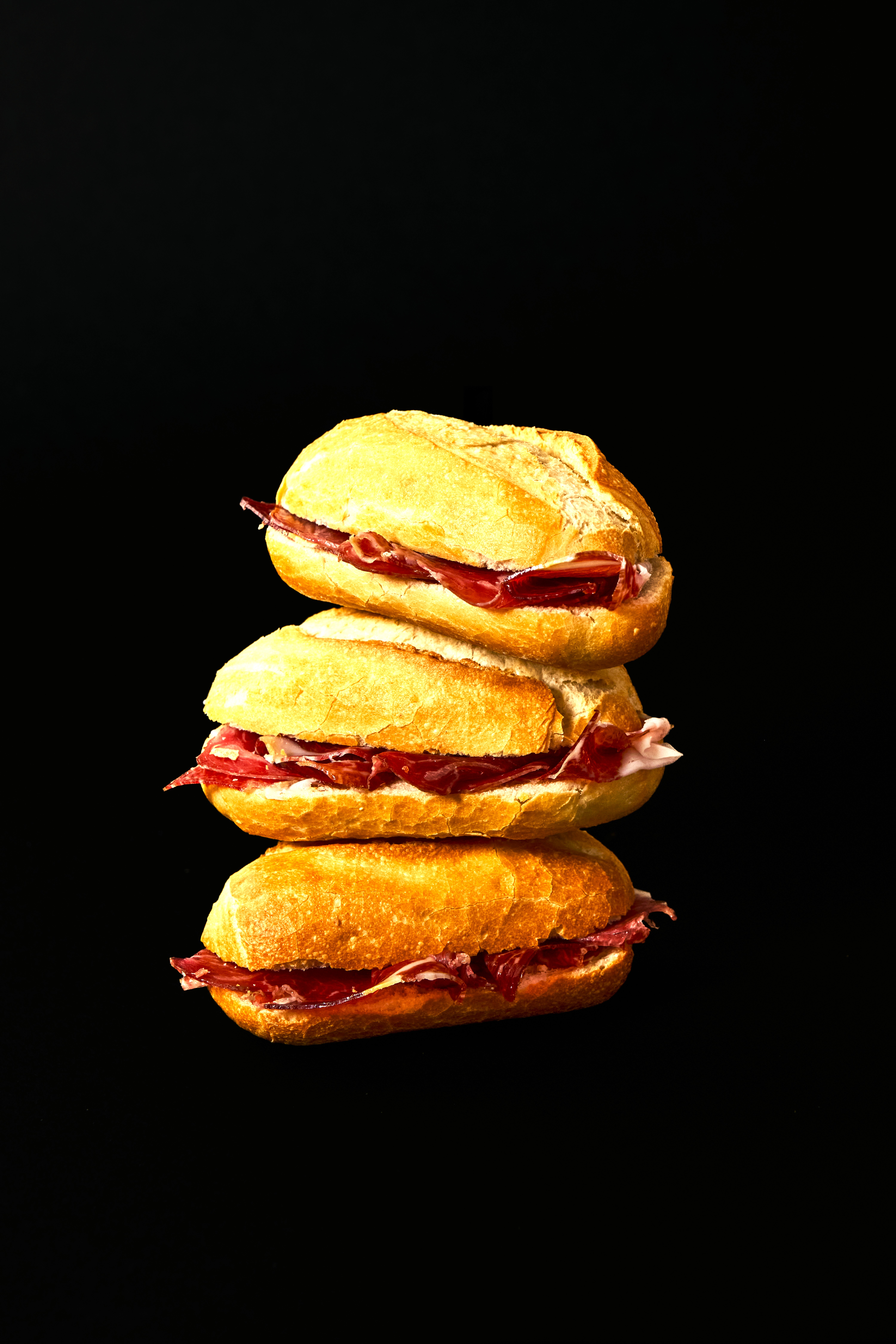 Cada uno de nuestros bocadillos de jamón es un homenaje a nuestra tierra, elaborado con paciencia, respeto por el producto y la dedicación que generaciones han puesto en conservar la excelencia del jamón ibérico en España.